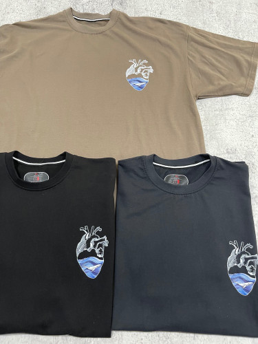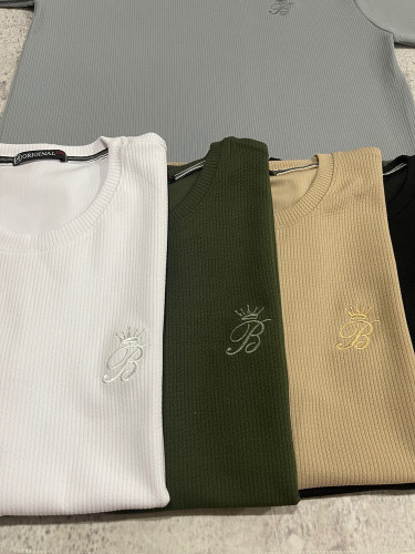 تی شرت یقه گرد بیسکویتی گلدوزی شده